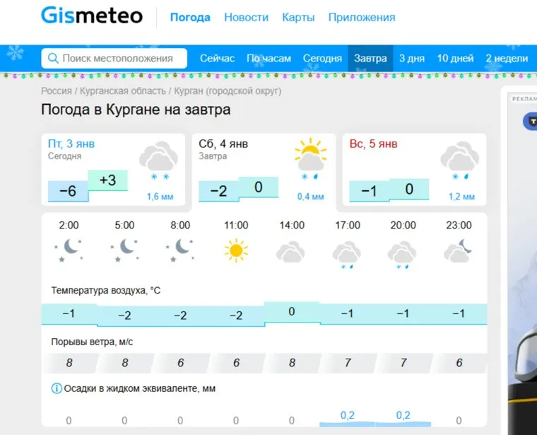 Фото: скрин сайта Gismeteo Курган