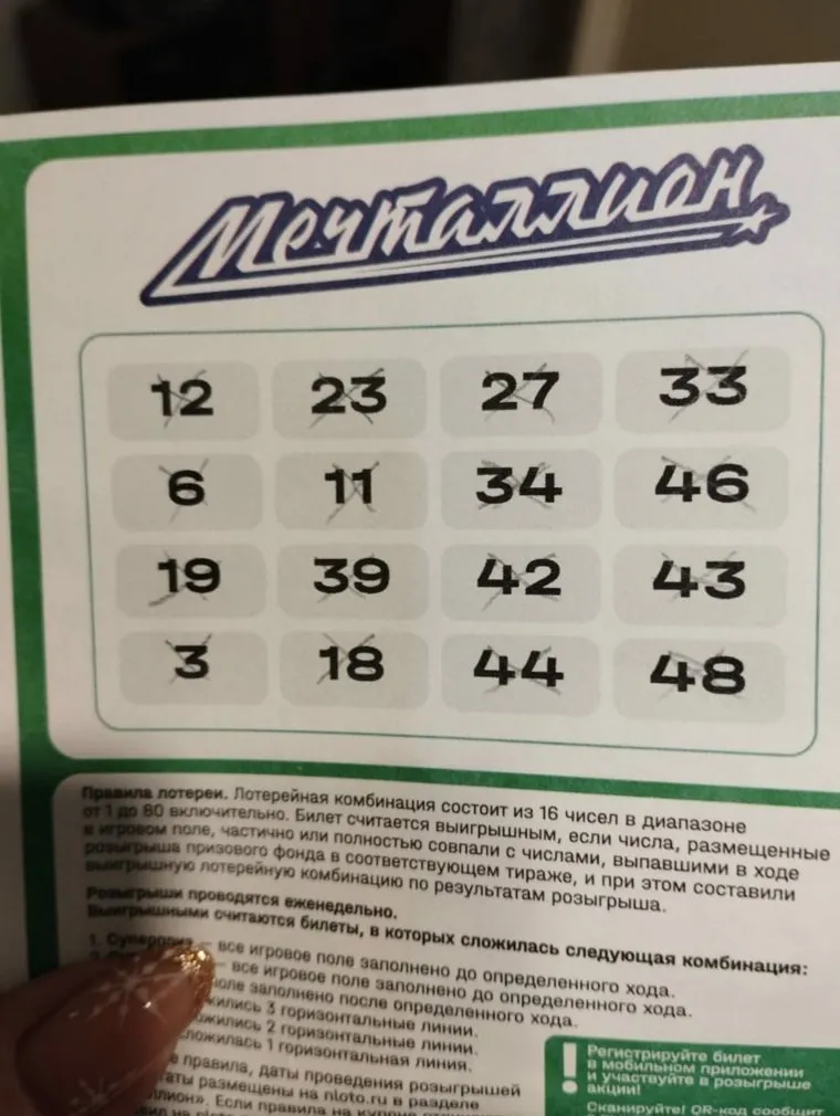 Победительница добавила, что не готова раскрывать более подробные детали своей личности, но поделилась фото победного билета. Она отметила, что участие в новогодней лотерее для их семьи своеобразная традиция.