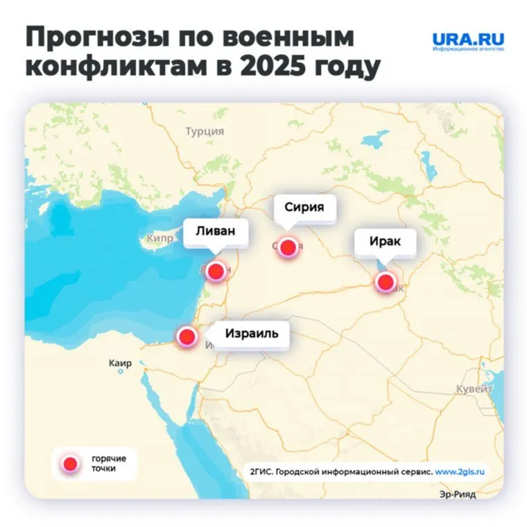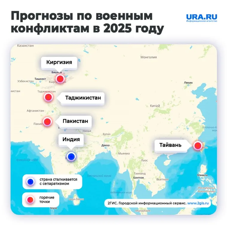 Так, например, возникнуть они могут из-за борьбы между крупными экономиками США, Китая и Турции за рынки кредитов, пояснил в разговоре с URA.RU специалист Института Ближнего Востока Сергей Балмасов. По его мнению, из-за противостояния в этой сфере 2025 год будет «урожайным» на конфликты. Эксперты назвали конкретные точки, где, по их мнению, вероятны обострения конфликтов.