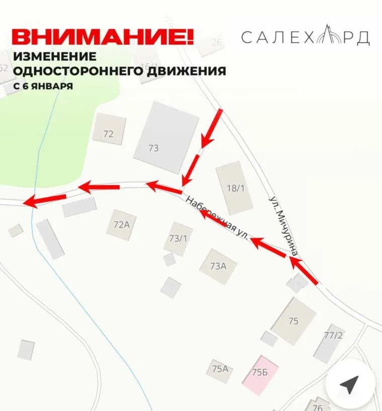 «Уважаемые Салехардцы, меняется схема одностороннего движения на улице Набережная. Будьте внимательны при планировании маршрута», — рассказали в telegram-канале администрации.