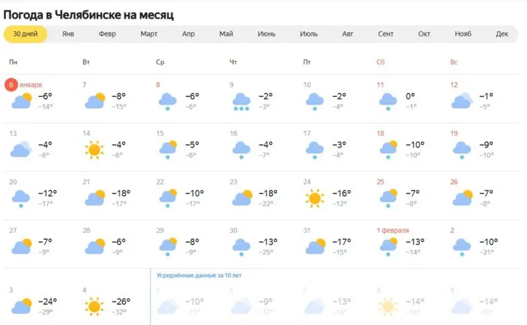 Фото: Скрин: «Яндекс. Погода» https://yandex.ru/pogoda/chelyabinsk/month?via=hnav