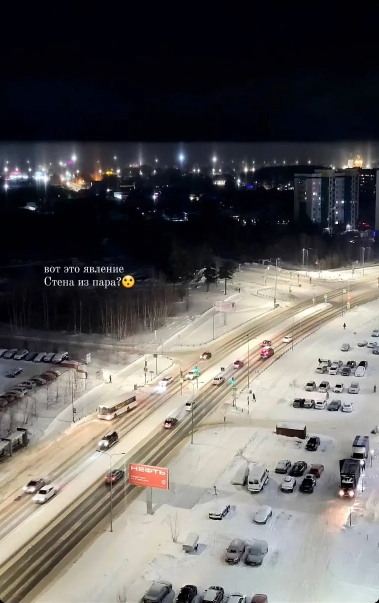 Жители Сургута в ночь с 7 на 8 января могли наблюдать необычное явление — газообразное облако, поднимающееся из города и заканчивающееся ровной линией. Сургутяне предположили, что это стена пара.