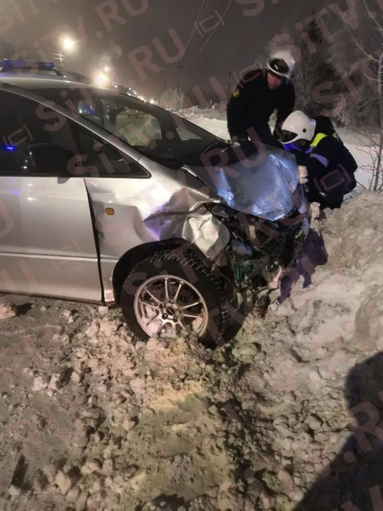 В ХМАО водителя зажало в искореженной легковушке после ДТП. Фото