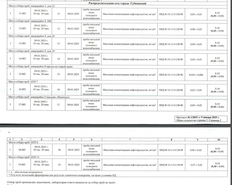 Результаты проверки показали норму в показателе «Концентрация нефтепродуктов»