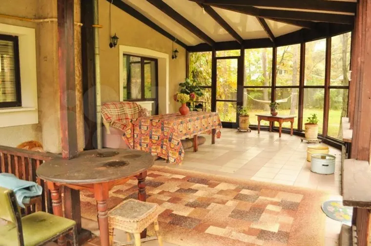 Уточняется, что дом был построен в 1999 году из кирпича. Стены отделаны натуральным камнем. Кроме жилых комнат есть прачечная, котельная, кладовые и гараж на два машиноместа.