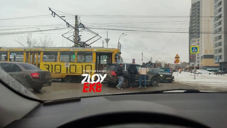 В Екатеринбурге блогер на внедорожнике попал в ДТП с трамваем. Фото