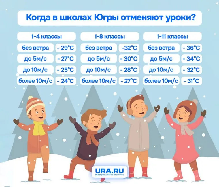 При какой погоде школьники ХМАО могут пропустить уроки. Инфографика