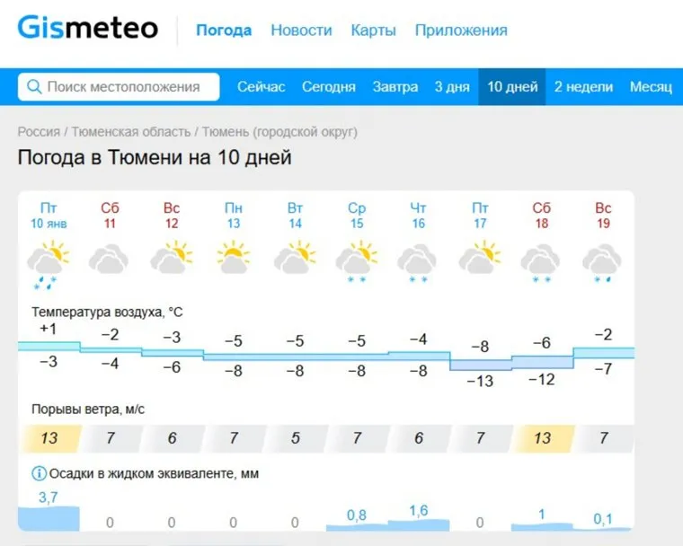 «В Тюмени с 17 по 19 января установится температура воздуха в районе -10°C. В ночное время столбики термометров не опустятся ниже -12°C, а днем 19 января поднимутся до -2°C», — сообщает ресурс.