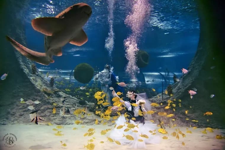 В Когалыме есть настоящий огромный океанариум. Тысячи рыб, в том числе, акулы живут здесь в 36 аквариумах, в которые можно погрузиться с аквалангом. Не хуже настоящего океана.