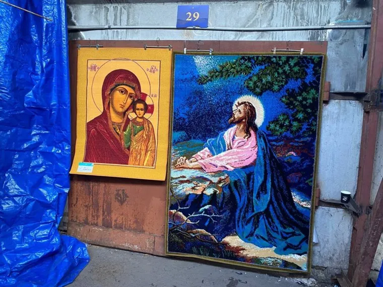 Епархия возмутилась коврами на челябинском рынке с изображением святых. Фото