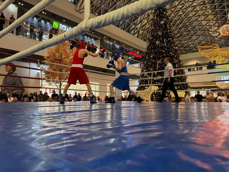 Посетители торгового центра могли наблюдать за ходом боксерских поединков