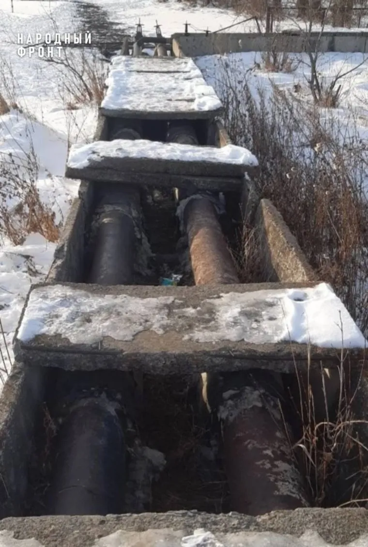 «На фото — нынешнее состояние теплотрассы, где отсутствует утеплитель, бетонные лотки аварийные, в результате происходят колоссальные теплопотери. По словам жителей, котельная топит на максимуме, расходует больше газа, что в конце концов ложится на плечи потребителей в виде высоких тарифов», — пояснили в «Народном фронте».