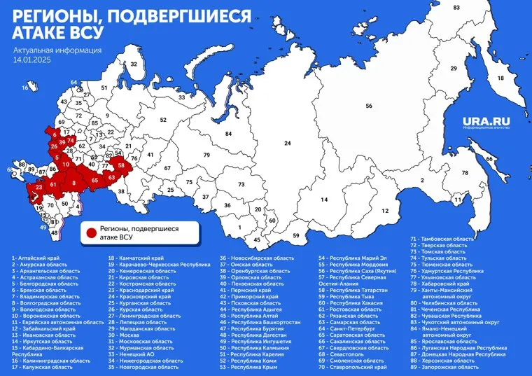 ВСУ предприняли массированную атаку на регионы России: куда летели дроны 14 января. Карта