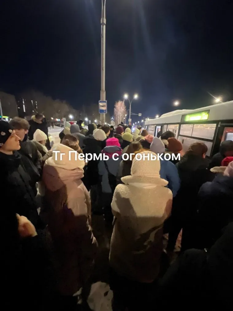 Пермяки выстроились в длинную очередь на автобус. Фото