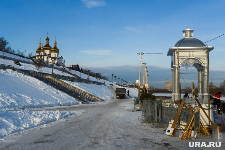 Место для обряда подготовлено на правом берегу Туры. На данный момент территорию оцепили, чтобы завершить работы
