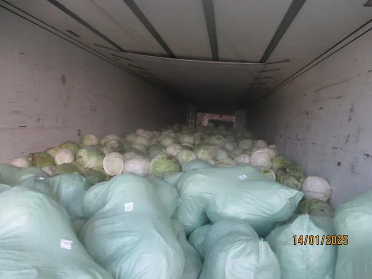 «При фитосанитарном контроле 14 января выявлены четыре нарушения при ввозе 87,3 тонны растительной продукции на территорию области. На челябинском складе временного хранения установлено, что в автомобилях, следовавших из Узбекистана в Челябинск, 43,2 тонны капусты перевозились навалом. Это является нарушением международного фитосанитарного законодательства», — заявили URA.RU в Россельхознадзоре.