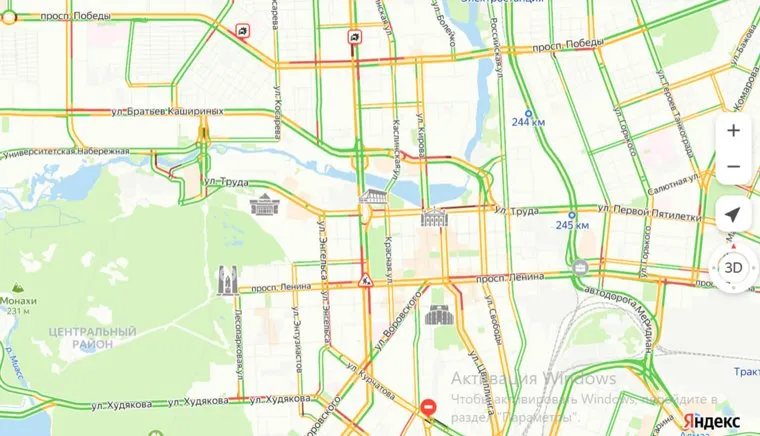 Наибольшие затруднения испытывают в данный момент автомобилисты, двигающиеся по проспекту Ленина, Братьев Кашириных, улице Труда, Воровского и Свердловскому проспекту. Согласно прогнозам Яндекс.карт, уже в течение часа движение восстановится.