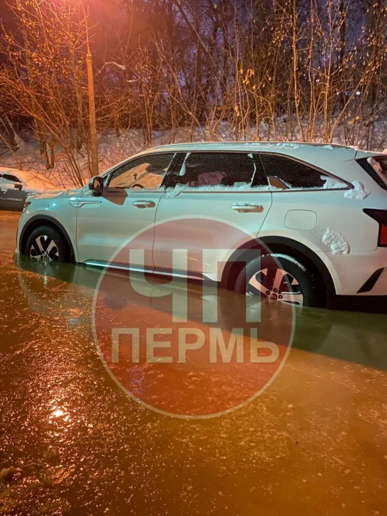В Перми произошел потоп на улице Самолетной. Вода оказалась даже внутри припаркованных автомобилей, рассказали очевидцы в telegram-канале «ЧП Пермь».