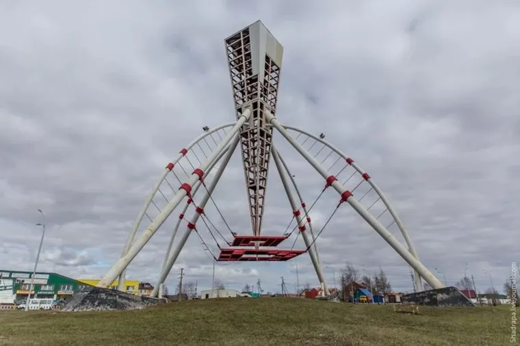 Так называемая «Каракатица» или инопланетный корабль из «Войны миров» на самом деле является монументальной композицией, авторским взглядом на то, как выглядит нефтяная вышка. Такой необычный монумент стал подарком городу на 35-летие в 2006 году.