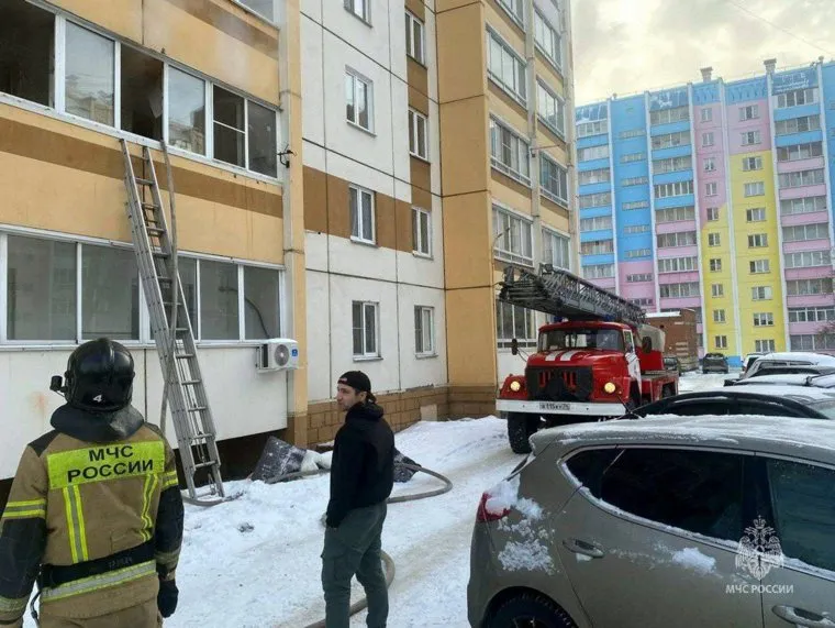«Огонь вспыхнул в квартире на втором этаже многоэтажки по улице Пожарского. Папа выпрыгнул из жилья, а затем поймал 3-летнего сына. По трехколенной лестнице огнеборцы МЧС России эвакуировали из опасной зоны маму», — рассказали в ведомстве.