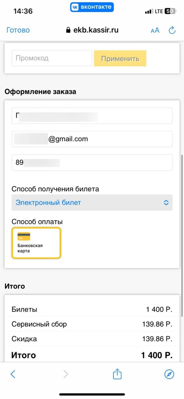 Желающие купить билеты на мероприятия в Екатеринбурге столкнулись с проблемой. При оформлении заказа на сайте билетного оператора Kassir.ru у людей вылазят чужие данные. По словам читателя URA.RU, такое происходит не в первый раз.