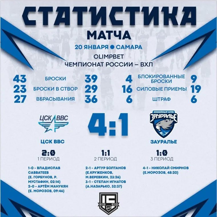 ХК «Зауралье» из Кургана на выезде проиграл «ЦСК ВВС» в Самаре. Матч закончился со счетом 4:1. Об этом сообщает пресс-служба клуба.