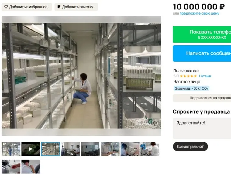 Лаборатория занимает двухэтажное здание площадью более 400 квадратных метров, говорится в предложении. К ней примыкает теплица. В помещениях есть необходимое для проведения исследований и работы с культурой оборудование. Автор объявления указал, что аналогичных исследовательских центров в России немного.
