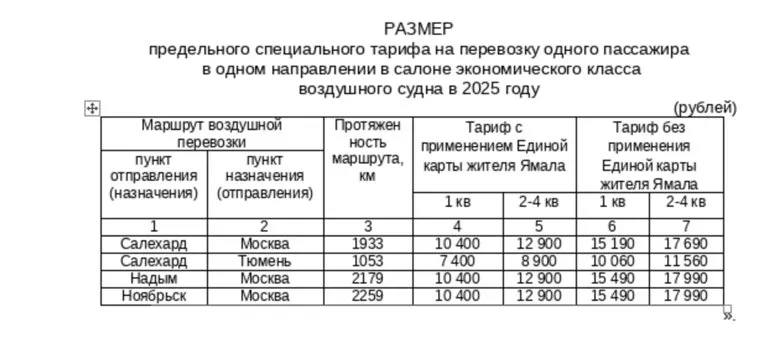 «В первом квартале предельная цена по маршруту Салехард — Москва составляет 10 400 рублей для держателей карты „Морошка“ и 15 190 рублей для остальных пассажиров. Начиная со второго квартала, предельную цену предлагается установить на уровне 12 900 рублей для держателей карты и 17 690 рублей для прочих пассажиров», — следует из приложения к документу, опубликованному на официальном сайте окружного правительства.
