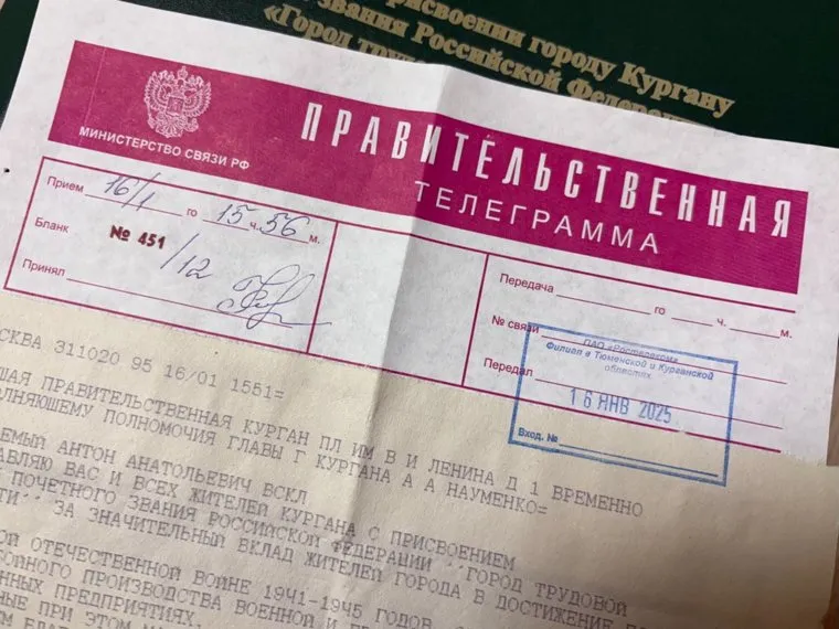 Председатель Совета Федерации Валентина Матвиенко поздравила жителей Кургана с присвоением городу почетного звания «Город трудовой доблести». Поздравительная телеграмма была адресована врип главы города Антону Науменко, сообщили в пресс-службе мэрии.