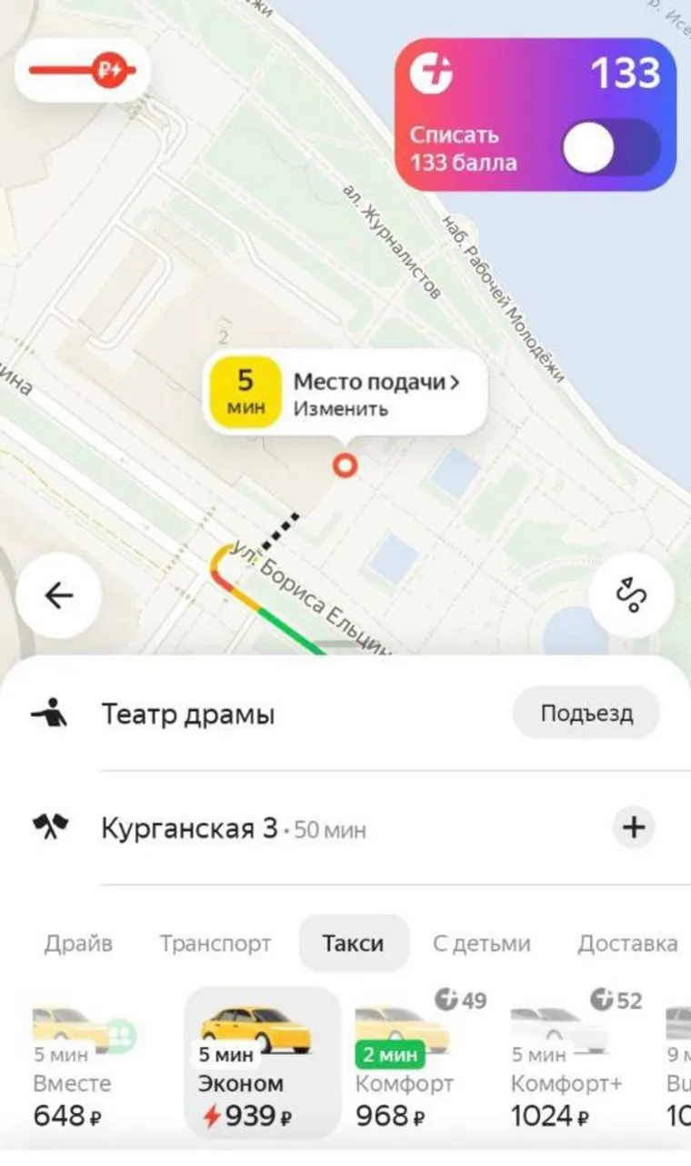 В Екатеринбурге из-за мороза взлетели цены на такси. Скрин