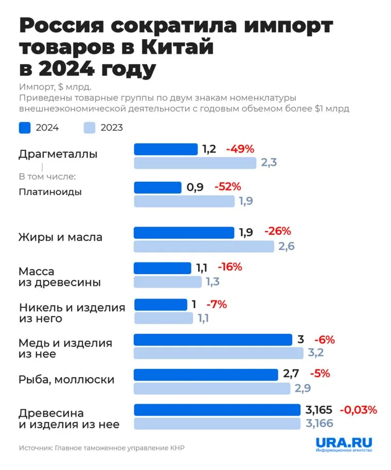 Российские товары, которые стали меньше ввозить в КНР