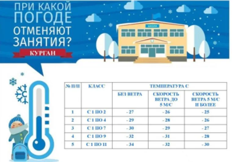 Отмена занятий в школах Кургана происходит в соответствии с утвержденной температурной шкалой. Но родители вправе не отправлять детей в школу в непогоду, особенно, если школа находится далеко. Об этом сообщили URA.RU в администрации города Кургана и департаменте образования и науки области в ответ на пост главы Лиги безопасного интерната Екатерины Мизулиной с жалобами школьников на учебу в мороз и метель.