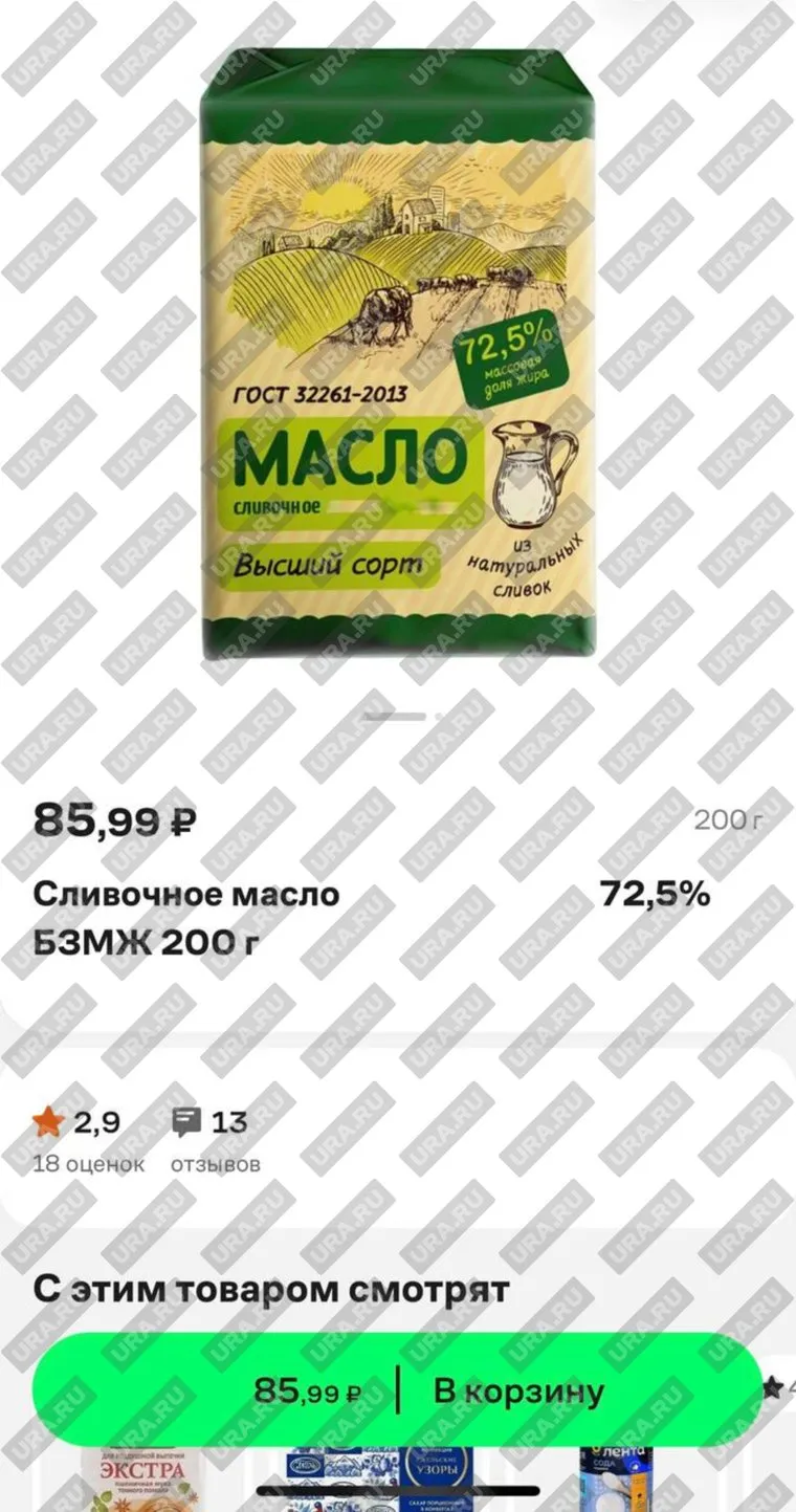 «Сливочное масло, высший сорт, 72,5% жирности. Цена: 85 рублей 99 копеек», — за такую стоимость продают 200-граммовую пачку в одном из тюменских супермаркетов.