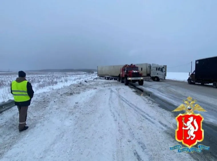 На 183-м километре трассы между Пермью и Екатеринбургом водитель фуры не справился с заносом и влетел в ограждение, перекрыв проезд. На участке организовали реверсивное движение, рассказали в Госавтоинспекции региона.