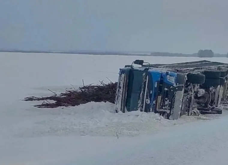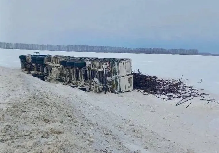 «Произошел инцидент с большегрузом, перевозившим 18 тонн латуни. Водитель допустил съезд с дороги и опрокидывание грузовика», — пишет telegram-канал «Шадринск».