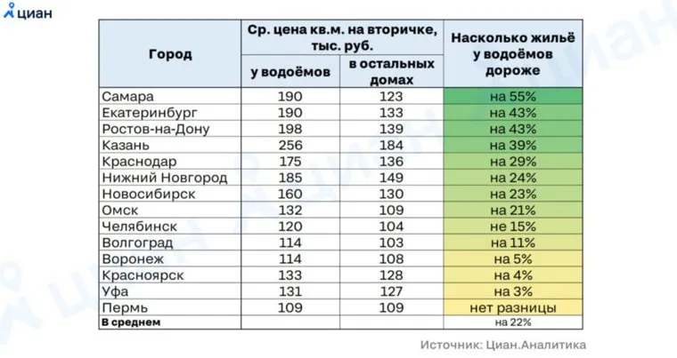 В Челябинске вторичные квартиры у водоемов стоят на 15% дороже, чем в обычных домах. Так, в городе цена квадратного метра в квартирах рядом с водоемом составляет 120 тысяч рублей, а в остальных домах 104 тысячи рублей за «квадрат», сообщается на сайте о недвижимости.