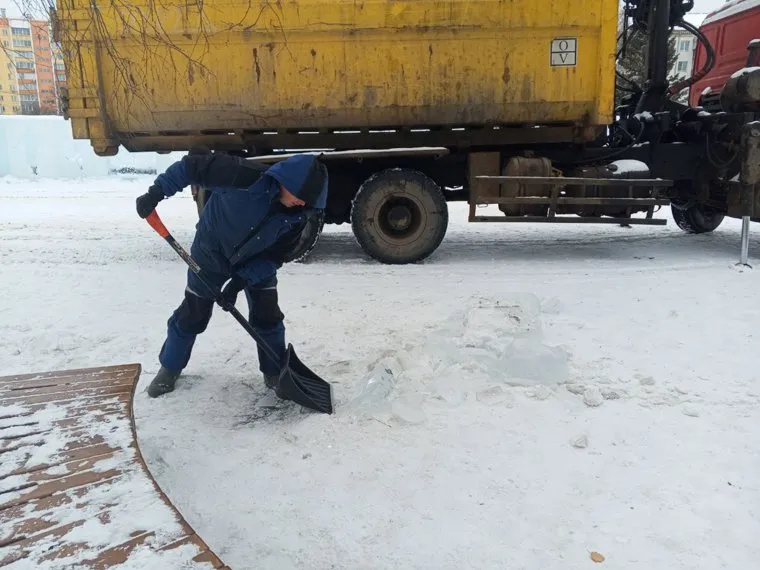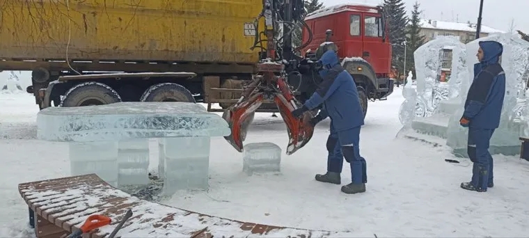 На главной площади Копейска (Челябинская область) демонтируют ледяные фигуры. Об этом сообщили в пресс-службе мэрии.