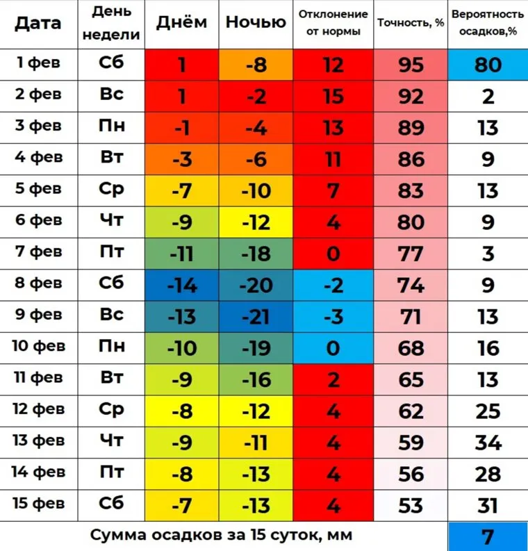 «С 1 по 15 февраля в Кургане средняя температура составит -10 градусов, что на пять градусов выше нормы. В начале месяца прогнозируется очень теплая погода. Температура будет на 11-15 градусов выше нормы. Днем -1...+1, ночью -2...-6. С 7 по 10 февраля ожидается похолодание. Днем -10...-14, ночью -18...-22», — сообщается в telegram-канале.