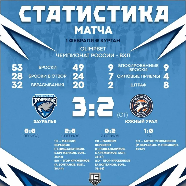Курганский ХК «Зауралье» обыграл команду «Южный Урал». Скрин
