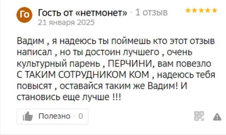 А вот итальянский ресторан «Перчини» в настоящее время оценен на портале в 4, 5 балла. В 2019 году заведение получило премию 2ГИС — ресторан признали одним из лучших в Сургуте. Особенно гости обращают внимание на вежливый и дружелюбный персонал. Некоторые из них даже просят повысить любимых официантов. «Вадим очень культурный парень. „Перчини“, вам повезло с таким сотрудником. Надеюсь, тебя повысят», — говорится в одном из отзывов.