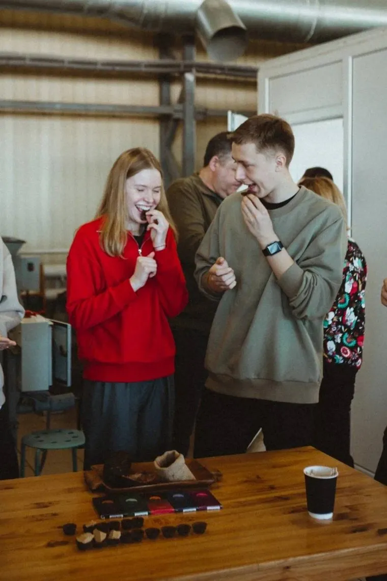 Гостям на фабрике показывают полный цикл производства кофе и шоколада