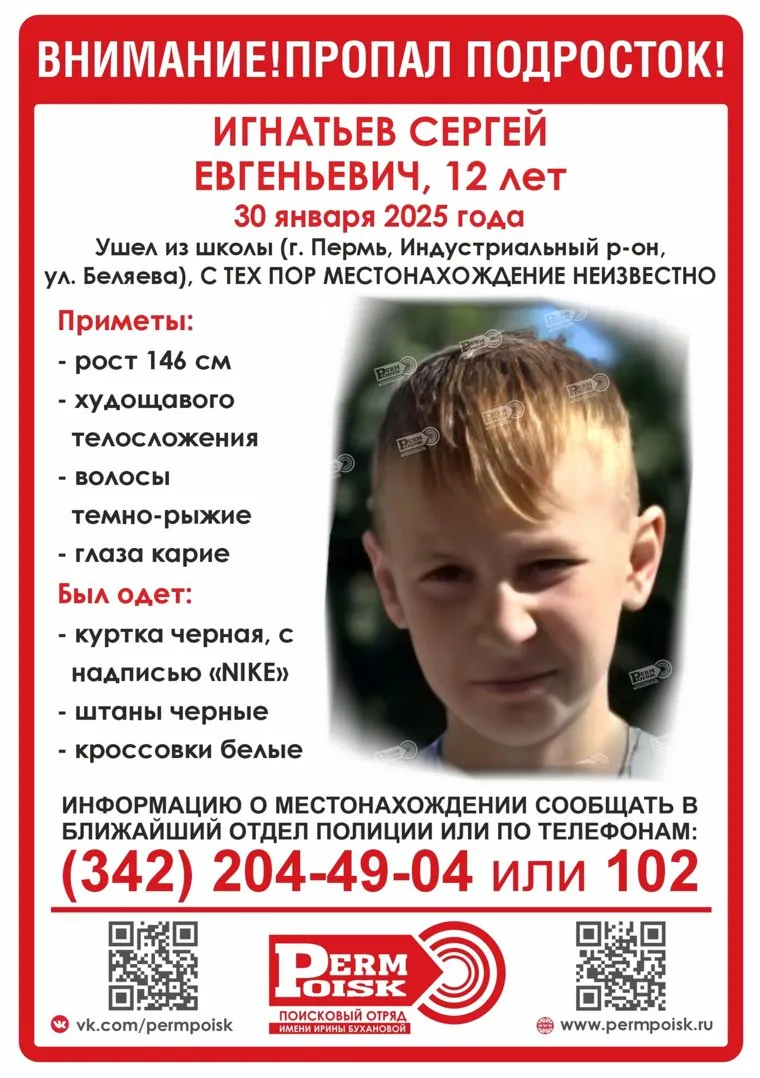 «Пропал подросток. Он ушел из школы по улице Беляева в Индустриальном районе Перми 30 января. По настоящее время его местонахождение неизвестно», — написано в telegram-канале объединения.