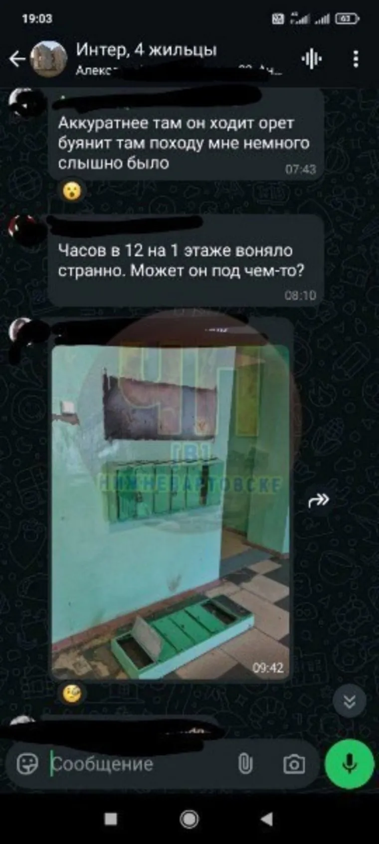 В Нижневартовске (ХМАО) жильцы дома по улице Интернациональной несколько лет страдают от неадекватного соседа. Накануне он среди ночи крушил подъезд, а когда днем соседи решили зафиксировать ущерб, напал на ветерана СВО и сломал нос соседу. О случившемся в соцсети рассказала общественница и свидетель произошедшего Мария Ярина.