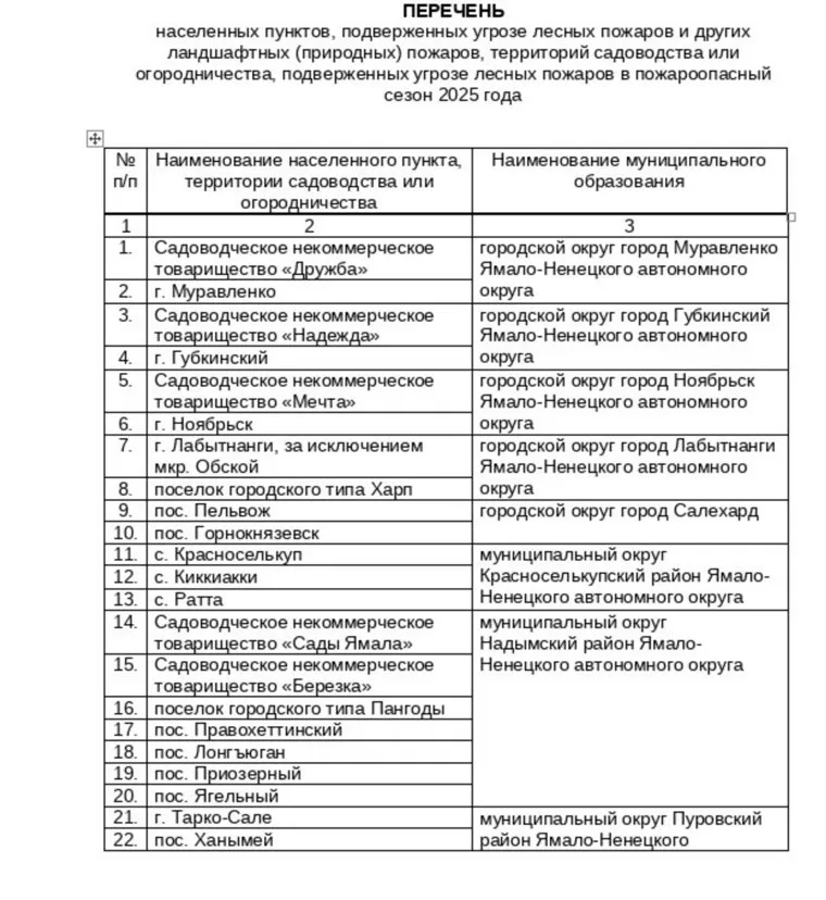 «Утверждается план мероприятий по подготовке к пожароопасному сезону 2025 года и определяется перечень населенных пунктов, подверженных угрозе лесных пожаров и других ландшафтных (природных) пожаров, территорий садоводства или огородничества, подверженных угрозе лесных пожаров», — сообщается в документе правительства округа. Пожароопасный сезон будет с 10 мая по 21 сентября.