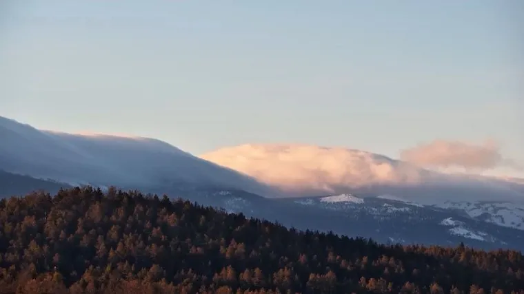 «Сегодня утром над Зигальгой развернулось очередное небесное шоу — предвестник смены погоды. Облачный фронт „перетек“ через хребет. Прогноз на ближайшие дни подтверждает: будет ясно», — сообщила пресс-служба нацпарка в Катав-Ивановском районе Челябинской области.