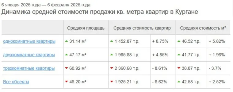 Анализ рынка недвижимости Кургана выявил интересную динамику цен на квартиры. Согласно последним данным, однокомнатные квартиры демонстрируют рост средней стоимости квадратного метра, в то время как трехкомнатные квартиры, напротив, дешевеют. Такие данные содержатся на сайте «Мир квартир».