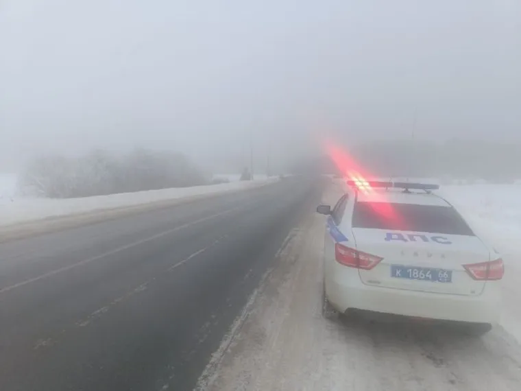 Свердловскую трассу накрыло густым смогом, на место выехали гаишники. Фото