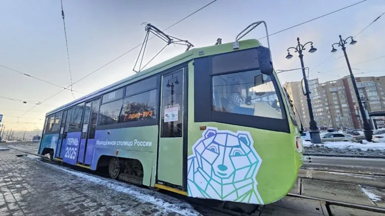 Трамвай оформлен в честь нового звания Перми «Молодежная столица России 2025»