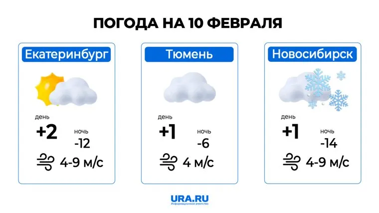 Погода в Екатеринбурге, Тюмени и Новосибирске