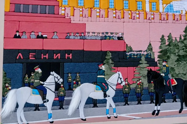«Самые талантливые юные умельцы Челябинска представят более 200 своих лучших работ. Самые яркие произведения посвящены 80-летию Победы. Представлена уникальная картина, которая выполнена в технике японского лоскутного шитья „кинусайга“ и показывает Парад Победы 1945 года на Красной площади в Москве. Это невероятная по красоте и объему, поистине звездная работа», — сообщили в музее.